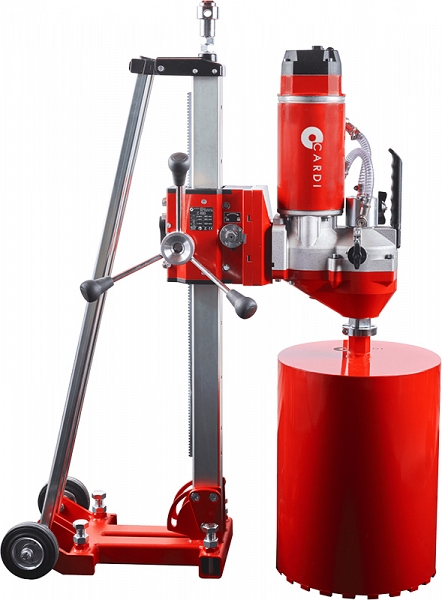 Установка алмазного бурения Cardi 805 (Карди 805) предназначена для сверления отверстий в бетоне, железобетоне Ø 100 – 600 мм, под углом 0° – 75°, с подачей воды.